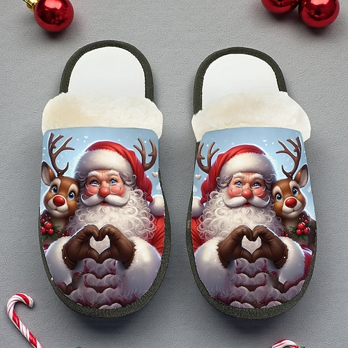 pantofole natalizie da donna con motivo di Babbo Natale, calde pantofole da casa per il comfort domestico durante le vacanze invernali
