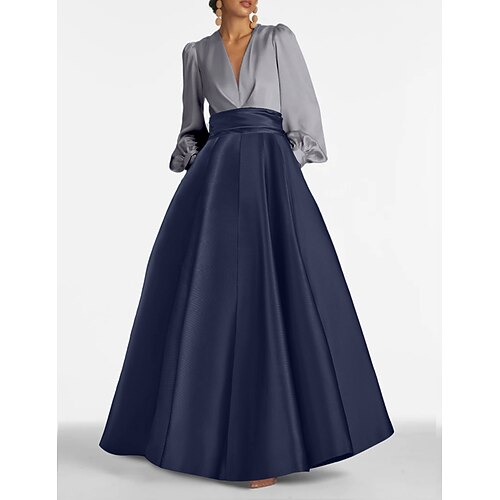 Abito A-Line da sera Elegante Vestito Formale Ospite di matrimonio Lunghezza totale Manica lunga Collo a V Satin con arricciature