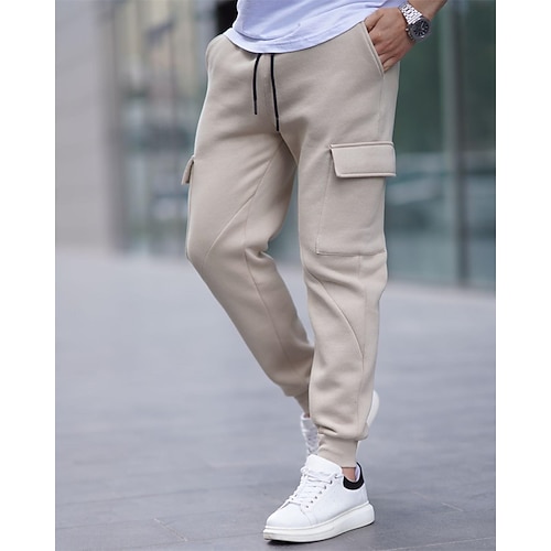 Per uomo Pantaloni Cargo Pantaloni in Pile Pantaloni da tuta Joggers Pantaloni Elastico in vita Coulisse Multi-tasche Semplice Comodità Caldo Lunghezza intera All'aperto Casuale Quotidiano Sport Moda