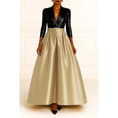 Per donna Da donna Abito da smoking Abito alto-basso Matrimonio Formale Ospite di nozze Strass Elegante Manica 3/4 plissettata Lunghezza al pavimento Revers dentellati