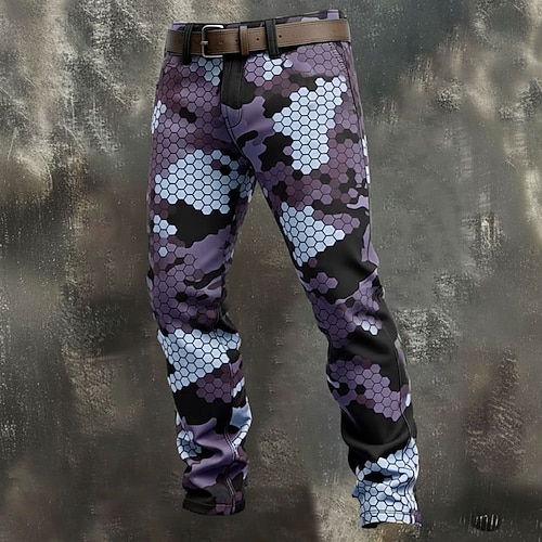Per uomo Geometrico Mimetico Pantaloni Pantaloni Eleganti Pantaloni da Abito Misura del girovita medio Casual All'aperto Vacanza Pantaloni slim fit con tasche Primavera Autunno Stampa 3D Viola Verde