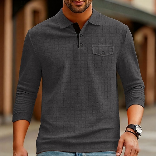 Per uomo Maglia da golf Polo da Golf Casuale Lavoro Bavero Manica Lunga Essenziale Moderno Semplice Bottoni Tasca Frontale Primavera Autunno Vestibilità regolare Blu Nero Blu marino Viola Marrone