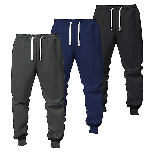 Confezioni multiple Confezione da 3 Per uomo Nero blu navy grigio chiaro Pantaloni da tuta Pantaloni Coulisse Elastico in vita Semplice Vacanza Abbigliamento quotidiano Poliestere Primavera