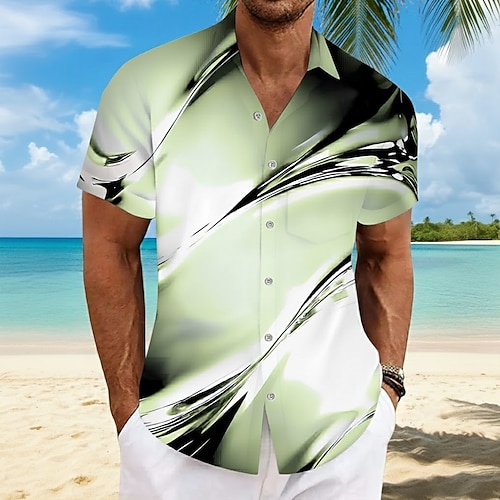 Per uomo Onde Astratto Colore sfumato Camicia Camicia Estiva Camicia con Bottoni Manica Corta Moda Casual All'aperto Vacanza Abbigliamento Quotidiano Estate Primavera Collo ripiegato Stampa 3D
