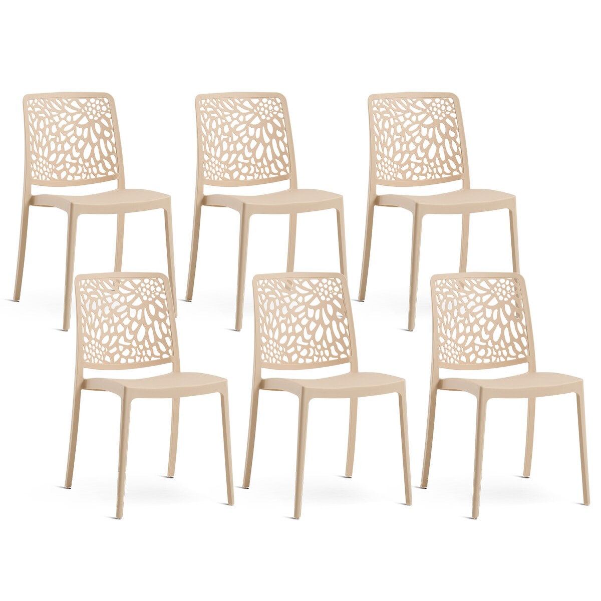 RATTATAN 6er-Set stapelbare Stühle aus Polypropylen mit Glasfasern für Garten oder Innenbereich, wasserabweisend und widerstandsfähig - SOLE - Creme