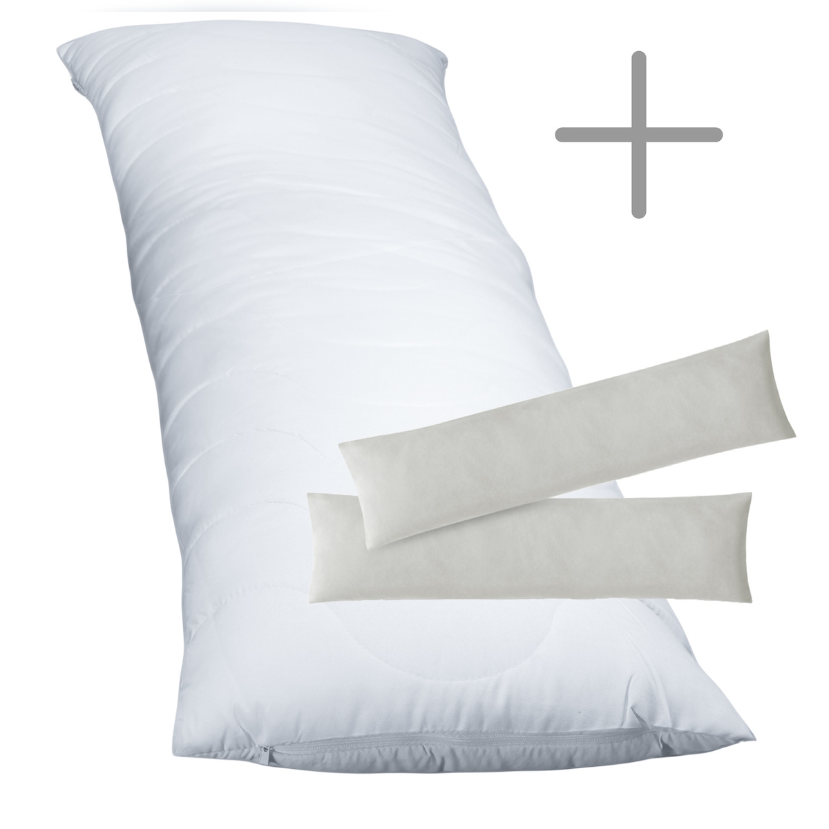 EXKLUSIV HEIMTEXTIL 2 Kissenbezüge inkl. Füllkissen Seitenschläferkissen Stillkissen 40 x 145 cm Silber