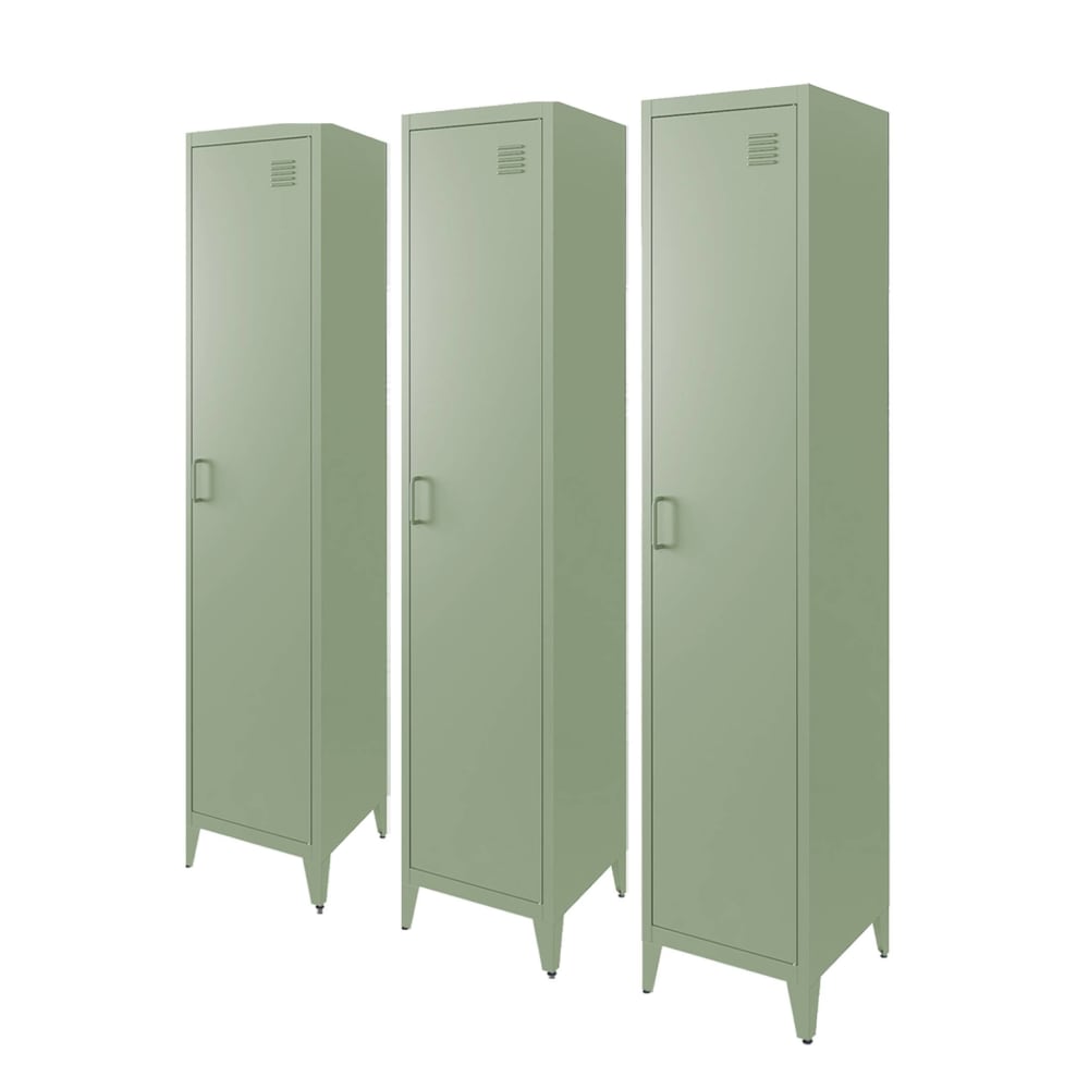 Set di 3 armadi camera industriale, 4 vani, verde chiaro