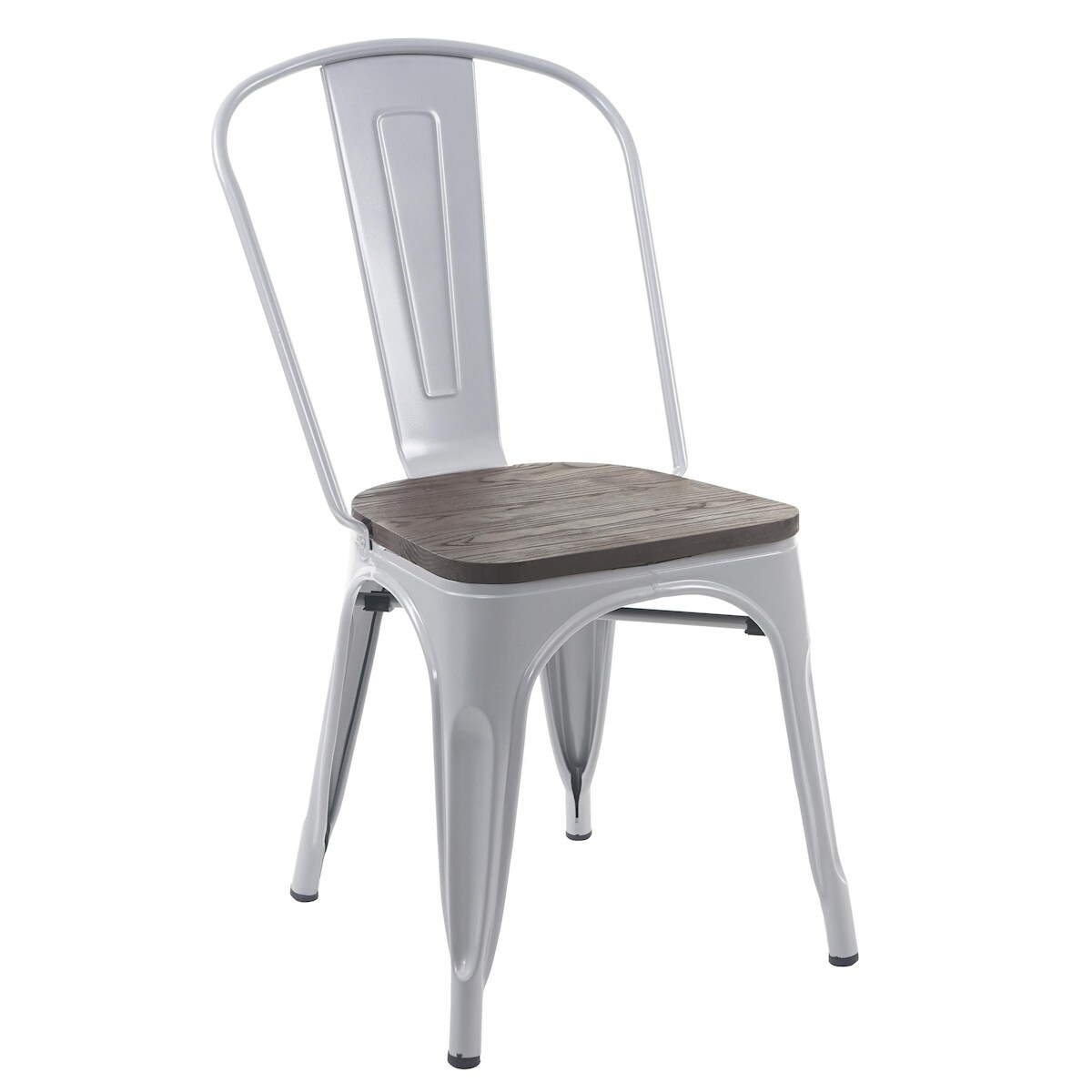 Mendler Stuhl HWC-A73 inkl. Holz-Sitzfläche, Bistrostuhl Stapelstuhl, Metall Industriedesign stapelbar ~ grau