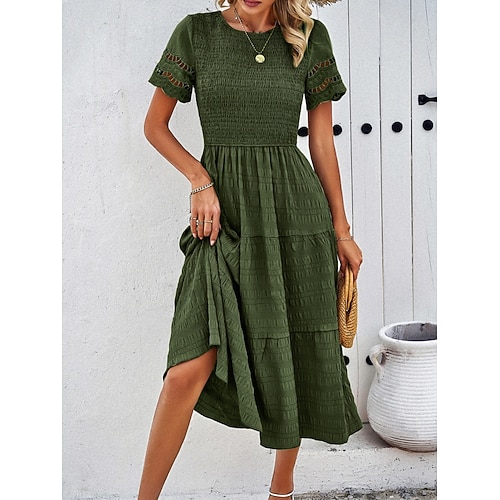 Per donna Abito Midi Abito a trapezio Abito Estivo Casual Quotidiano Vestibilità regolare Semplice Manica Corta Girocollo Nero Bianco Marrone Verde Estate Primavera