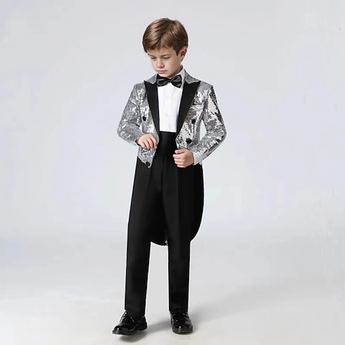 Completo da paggetto Ragazzi Bambini Abito Blazer, gilet, pantaloni, camicia e cravatta Casuale All'aperto Feste Moda Cool Essenziale Tinta unica Paillettes Tasca Bottoni Argento Poliestere