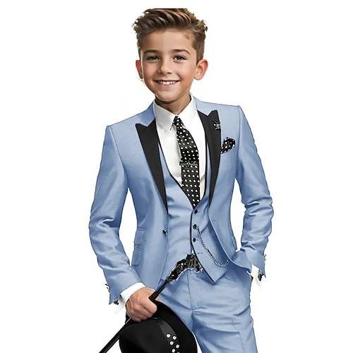 Completo da fedi nuziali per bambini, 3 pezzi, blazer gilet pantaloni da ragazzo, abito formale, casual, da esterno, da festa, alla moda, fresco, basic, tinta unita, tasche, bottoni, blu, nero,