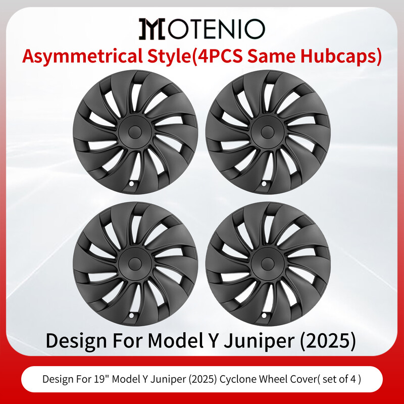 Lot de 4 Cache-Jantes Premium Pour Tesla Model Y Juniper (2025-2026) 19 Pouces Enjoliveurs Noir Mat Style Cyclone avec Centre Lisse Couverture Complète Jantes Moyeux Caps Protection Couvercle Uniquement Pour Model Y Juniper (2025-2026) Cache-Jantes Accessoires de Remplacement Plastique ABS Installation par Encliquetage Facile à Installer Ajustement Parfait
