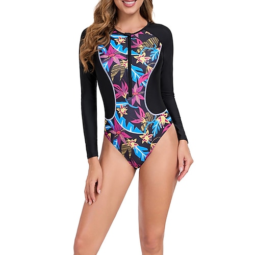 Per donna Top sottomuta Costume da bagno One Piece Patchwork Tropicale Protezione UV Alta elasticità Manica Lunga Costume da Bagno Con zip Surf Immersione Snorkeling Estate