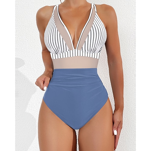 Per donna Costume da bagno One Piece Costume da bagno a vita alta con volant Color-blocking Elastico Senza Maniche Costume da Bagno Surf Snorkeling Nuoto Estate