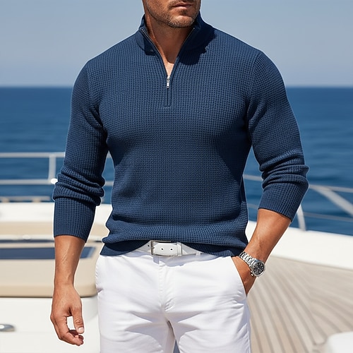 Per uomo Magliette Polo a Nido d'Ape Testurizzato All'aperto Casual Zip a un quarto Manica Lunga Moda Moderno Tinta unica Testurizzato Lavorato a maglia Autunno Primavera Autunno Autunno Inverno