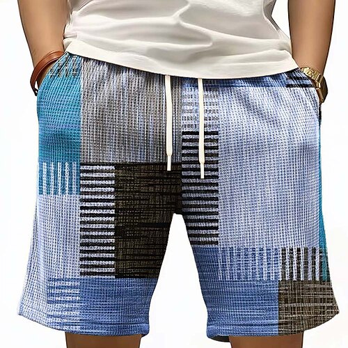 Per uomo Blocco di colori Patchwork Pantaloncini Waffle Pantaloncini da tuta Pantaloncini casual Misura del girovita medio Moda Casual Vacanza Jogging Allenamento Testurizzato Coulisse elastica in