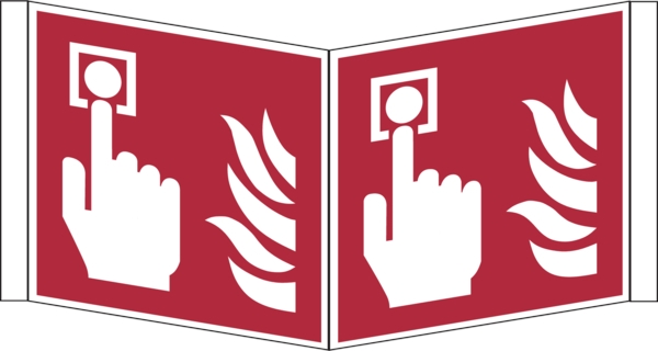 Brandschutzzeichen, Winkelschild Brandmelder F005 - ASR A1.3 (DIN EN ISO 7010) - 200x200x0.6 mm Aluminium glatt, nachleuchtend