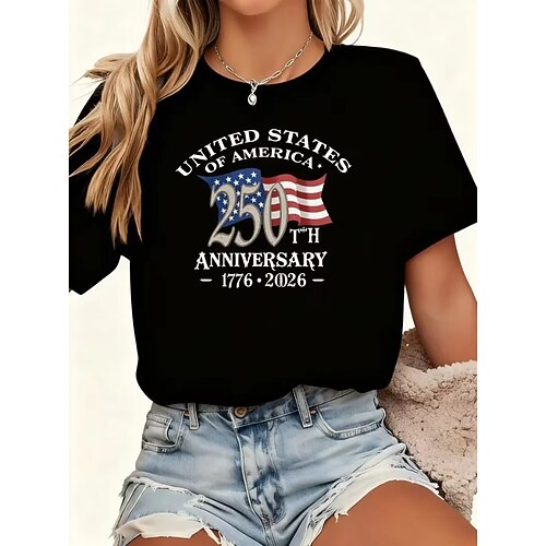 Maglietta patriottica del Giorno dell'Indipendenza Americana 250° anniversario T-Shirt da donna Grafica Bandiera Bandiera Nazionale Vintage Stile Classico Maniche corte Collo a girocollo Stampa
