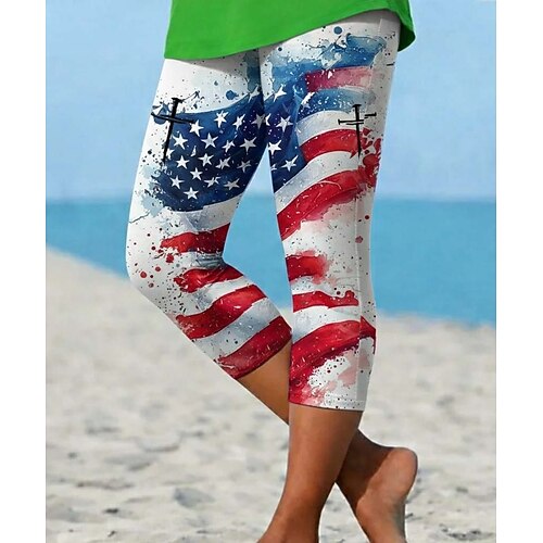 Camicia patriottica del Giorno dell'Indipendenza Maglietta da donna Pantaloni Capri Leggings Vacanza Hawaii Elegante Capris Vita Media Pantaloni Bandiera Bandiera Nazionale Comfort Alta Elasticità
