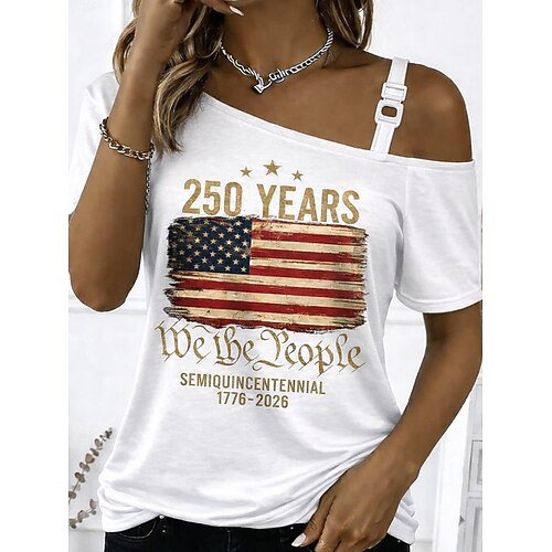 Giorno dell'Indipendenza Americana Per donna Maglietta Stampato Asimmetrico Grafico Bandiera Bandiera Americana Vintage Moda Elegante Manica Corta Monospalla Top Regolari Quotidiano Uscire Weekend