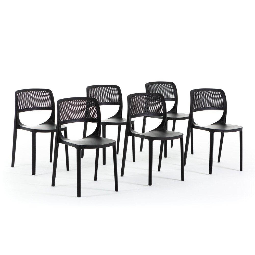 RATTATAN Set aus 6 Stühlen aus harzverstärktem Glasfaserharz,klassisches Design,stapelbar für Außenbereich,Garten,Bar,Restaurant,Küche–Erika–Schwarz