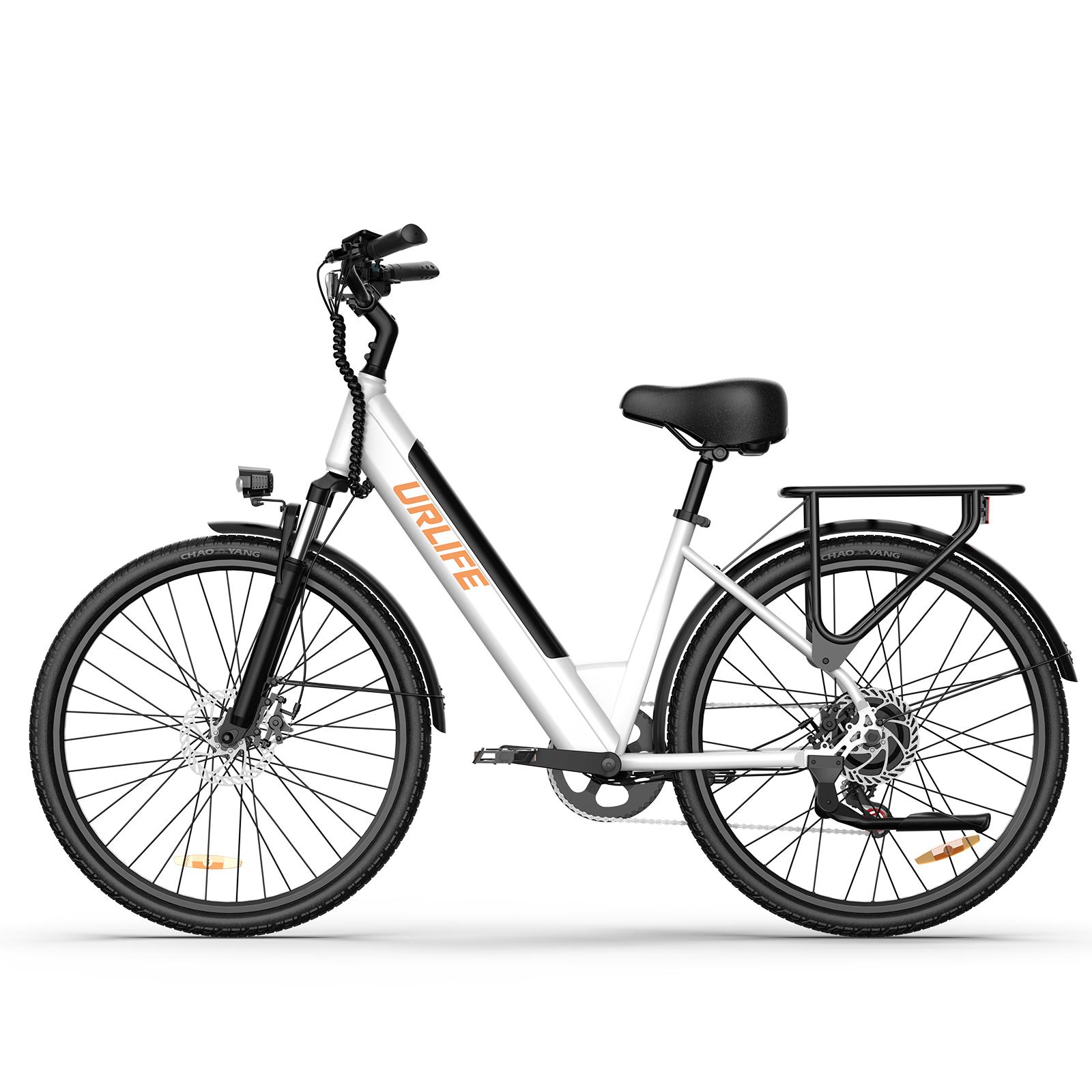 URLIFE E26 City Pendling E-cykel För Unisex 48V10.4AH/36V13Ah Batteri 350W Motor Utomhus Elcykel 26 Tum Vägdäck Elcykel Med TowSeat vit