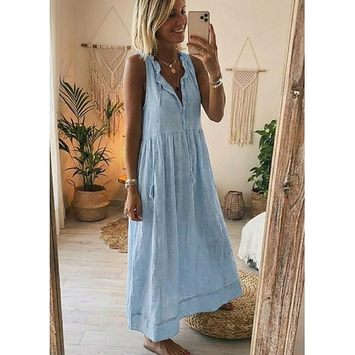 Per donna Abito maxi 100% cotone Vestito Estivo Essenziale Casual Quotidiano Vacanza Vestibilità regolare Semplice Senza Maniche Scollo a V Rosa Azzurro Estate