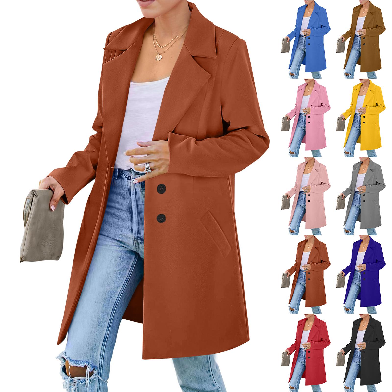 Women's Lapel Mid-length Button-down Woolen Coat cm sky blue
