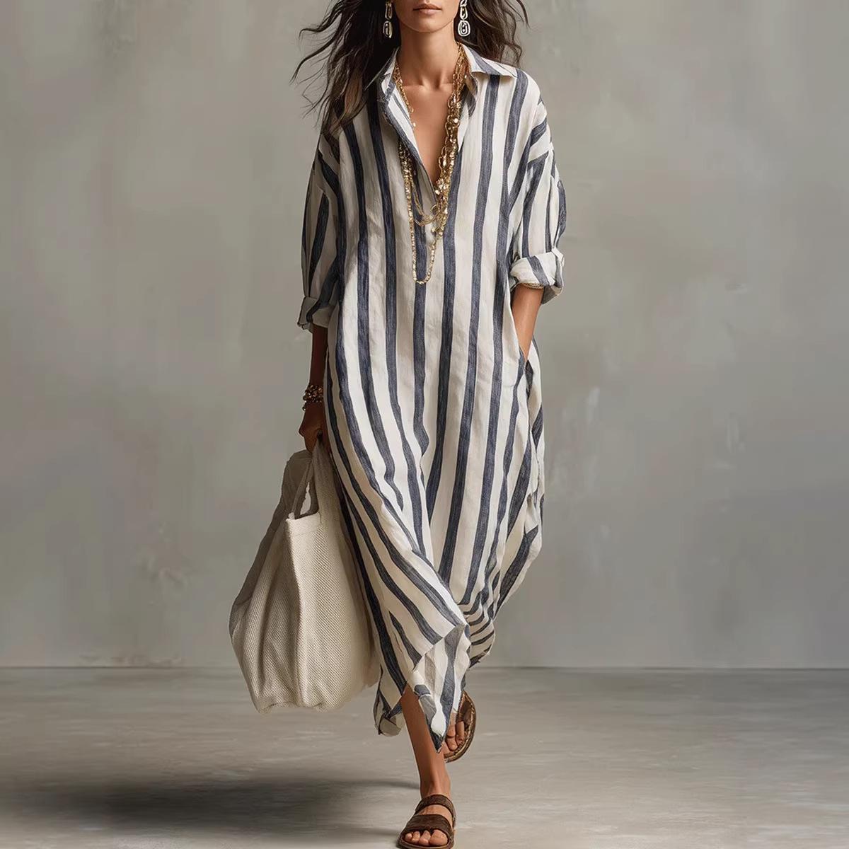 2026 Spring/Summer Casual Cotton Striped Lapel Dress cm blue