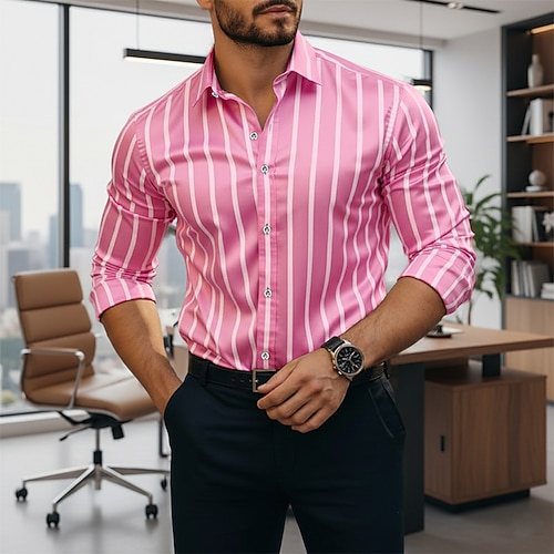 Per uomo Camicia Camicia elegante Camicia con Bottoni Strisce verticali Quotidiano Affari Nero Rosa Blu Verde Manica Lunga Collo ripiegato Tutte le stagioni Abbigliamento Patchwork