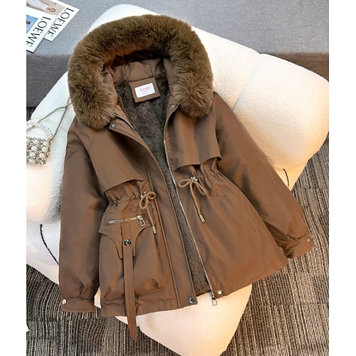 Per donna Cappotto Invernale Impermeabile Antivento Tasca Collo in Pelliccia Quotidiano Casuale Regolare Con Cappuccio Vestibilità regolare Manica Lunga Capispalla Nero Marrone Cachi Autunno Inverno