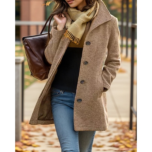 Per donna Cappotto Caldo Confortevole Tasca Bottoni Vintage Casual Semplice Vacanza Streetwear Casuale Abbigliamento quotidiano Lungo Collo ripiegato Vestibilità regolare Manica Lunga Capispalla Nero