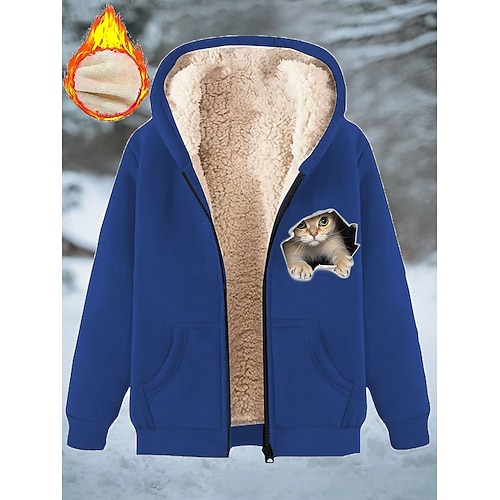 Per donna Cappotto Invernale Caldo Cerniera Tasca Stampato Moda Casual Animale Streetwear Casuale Corto Con Cappuccio Vestibilità regolare Manica Lunga Capispalla Blu Nero Rosso Primavera Autunno