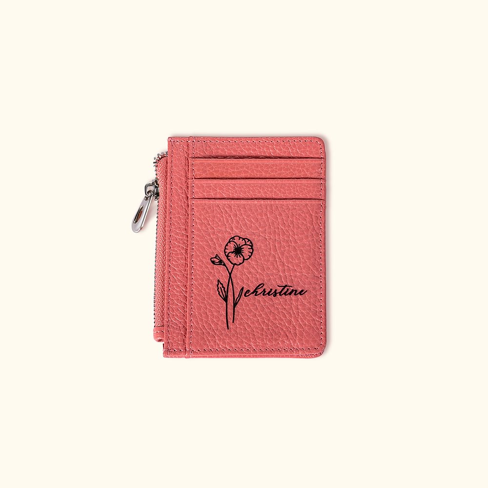 Portafoglio in pelle personalizzato con fiore di nascita Portamonete portatile con 8 scomparti per carte Regalo di compleanno per lei
