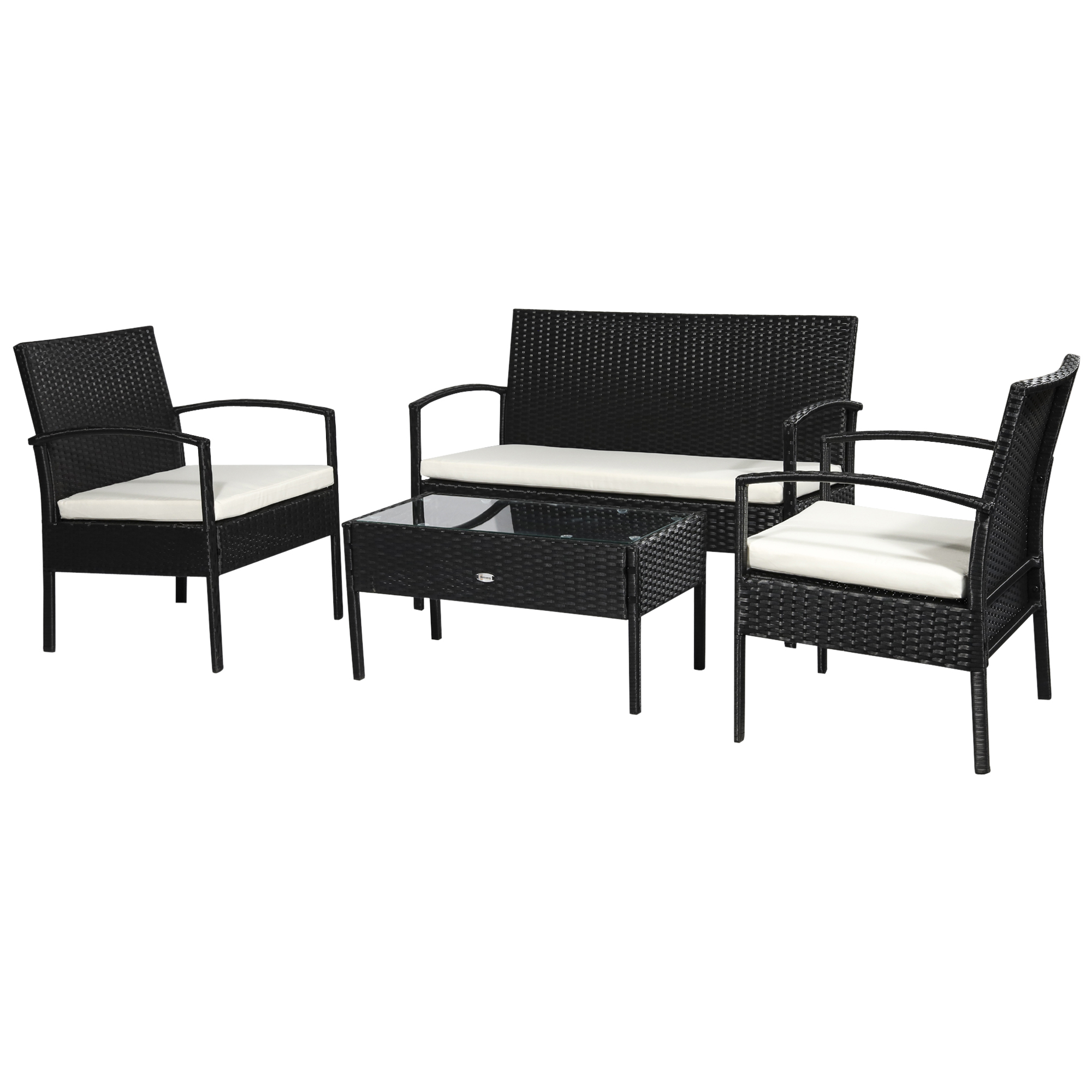 Outsunny Set Mobili da Giardino in Rattan Sintetico Composto da 1 tavolino 2 poltrone e 1 divano a 2 posti Nero e Crema
