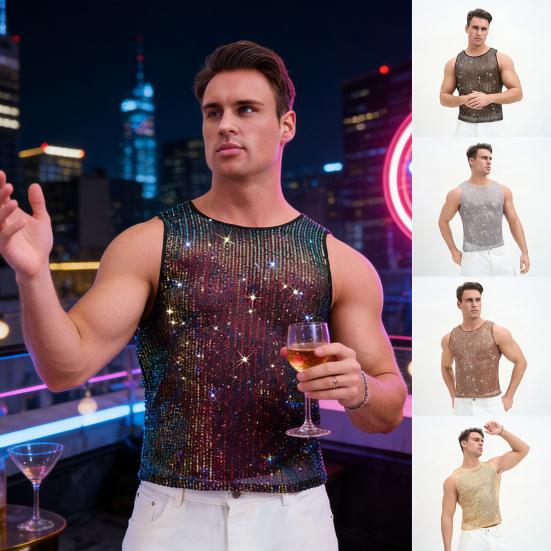 Heren Strass Vest Sprankelend Rond Hals Mouwloos Shirt Doorzichtig Sexy Tanktop voor Muziekfestival Rave Nachtclub Bar Feest cm