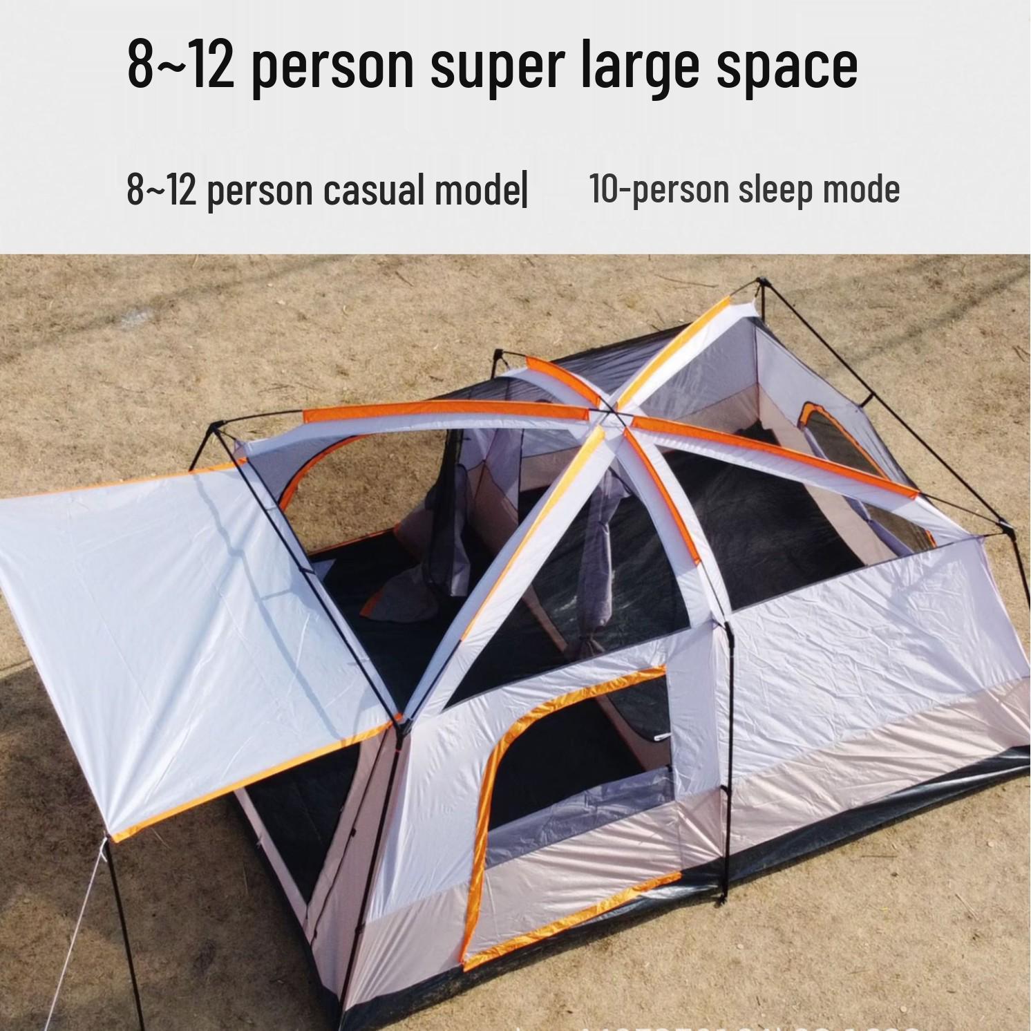Grote Dubbellaags Stormvaste Tent voor 5-12 Personen - Twee Kamers, Leefruimte, Opvouwbaar, Draagbare Buiten Campinguitrusting. hemelsblauwe kleur