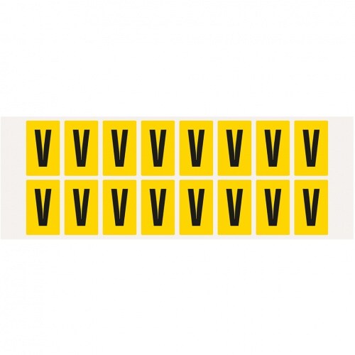 Aufkleber I Buchstabe V, gelb/schwarz, Folie, Schrifthöhe 25mm, 22x36mm, 320 Stück/Packung