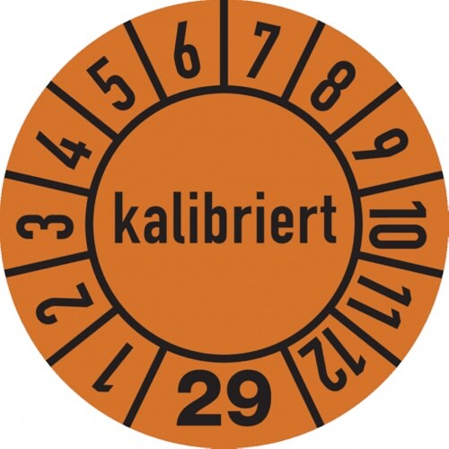 König Werbeanlagen Dreifke® Jahresprüfplakette, kalibriert, orange/schwarz, Folie, - 10 mm Folie selbstklebend