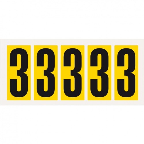 Aufkleber I Ziffer 3, gelb/schwarz, Folie, Schrifthöhe 75mm, 38x88mm, 100 Stück/Packung