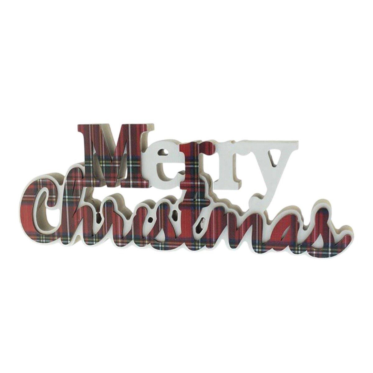 WellHome - Dekoratives „Frohe Weihnachten“-Schild im roten Gingham-Design