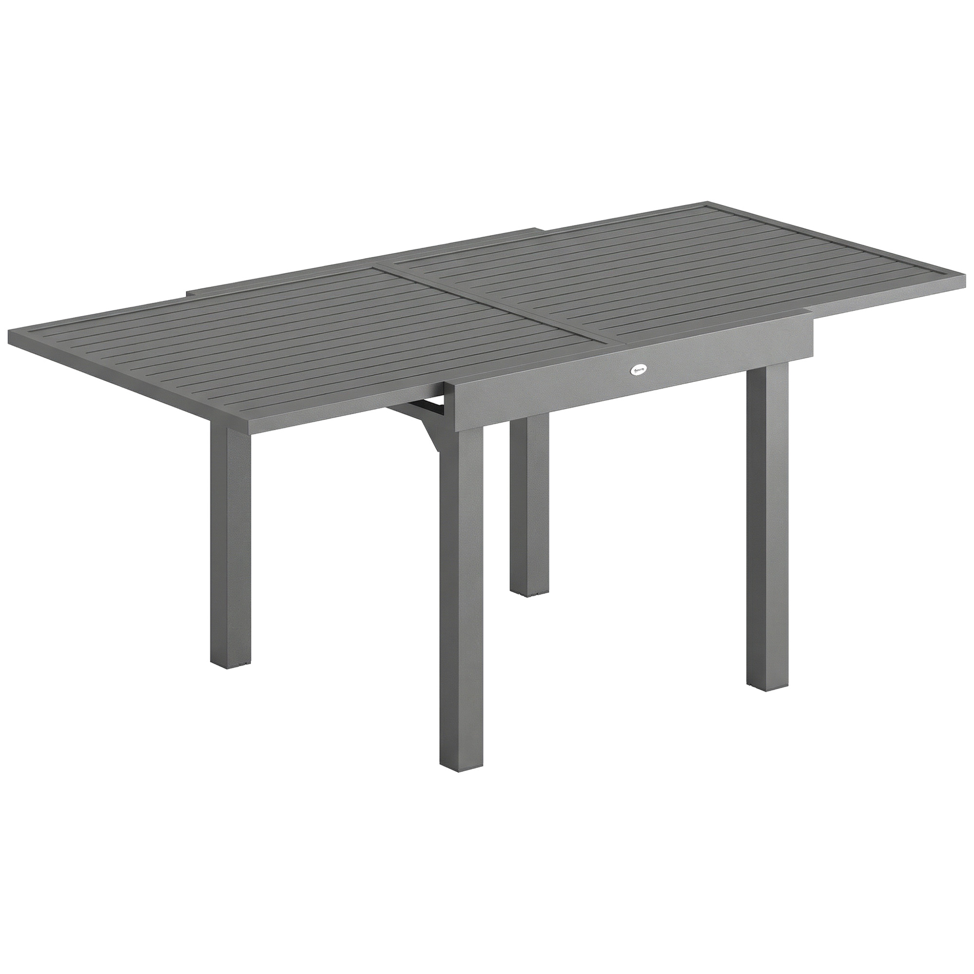 Outsunny Extending Garden Table for 4-8 People, Aluminium Outdoor Dining Table with Slatted Top, Dark Grey