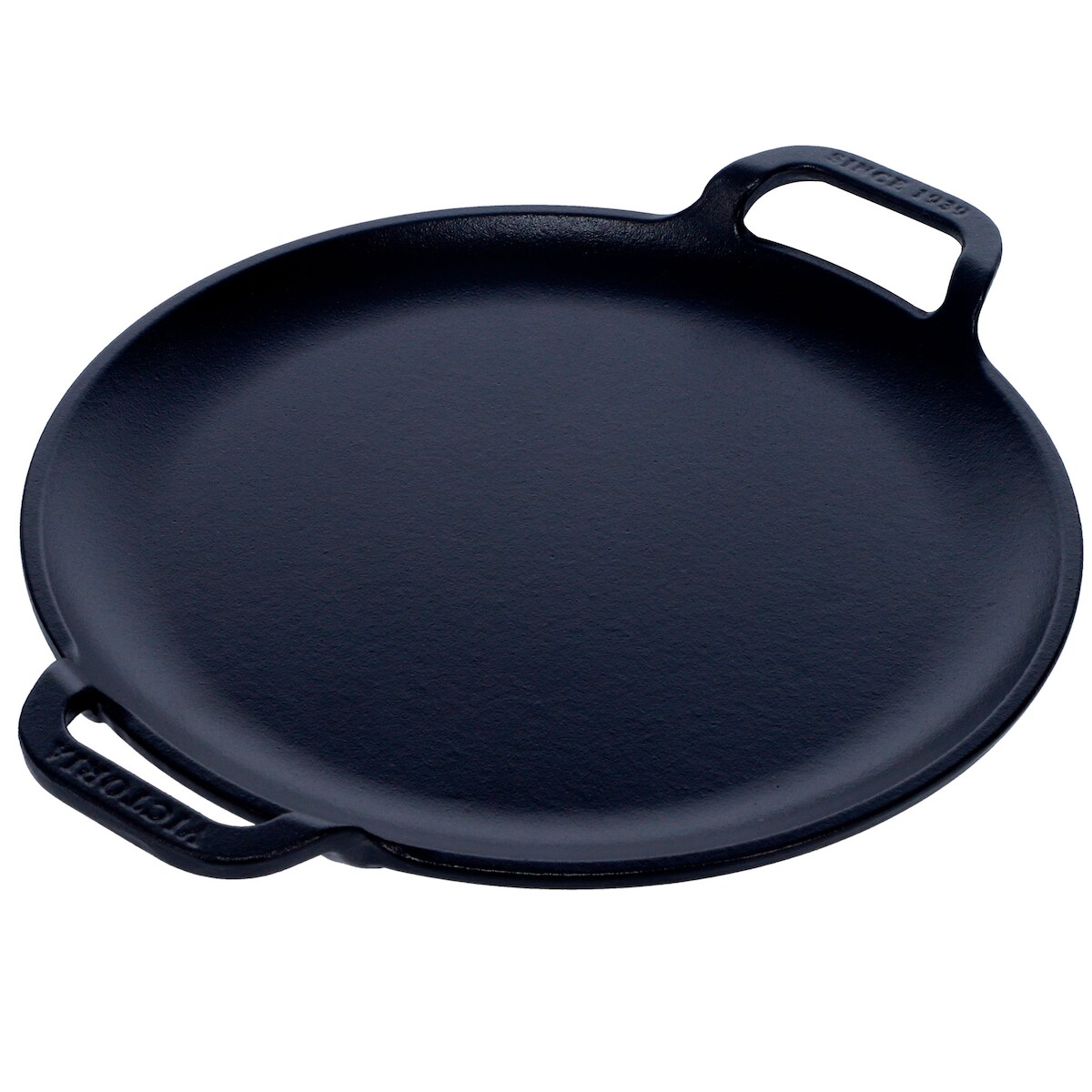 Victoria Grillplatte Gusseisen für Pizza, Pfanne 25cm mit Griffen, Induktion, Feuer, Ofen, VIC-31800, Schwarz
