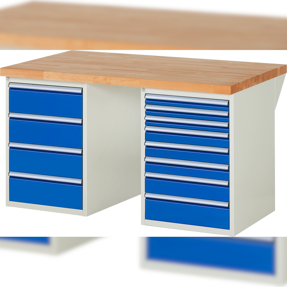 PROREGAL Werkbank Serie 7000 - Modell 7513 | HxBxT 84x300x90cm | 10x Schublade | Schubladenmaße 4x120 + 4x150 + 2x180mm