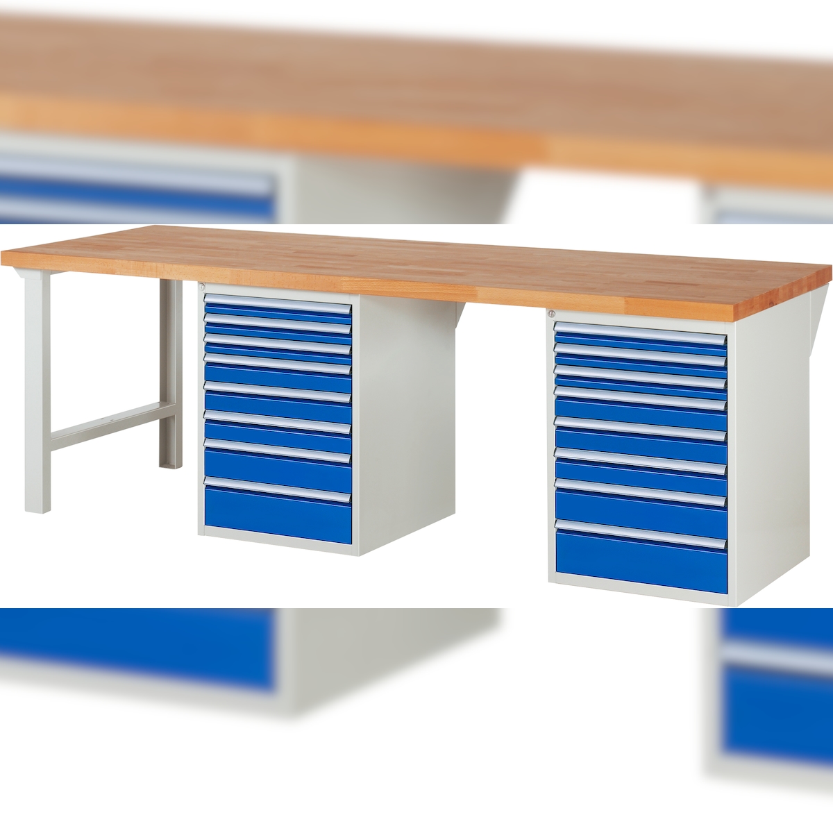 PROREGAL Werkbank Serie 7000 - Modell 7517 | HxBxT 89x250x90cm | 14x Schublade | Schubladenmaße 4x60 + 4x90 + 4x120 + 2x180mm