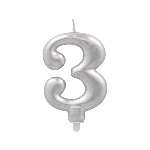 Papstar 12 Zahlenkerzen mit Halter 7 cm silber `3`