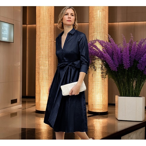 Linea ad A Lunghezza Tè Lunghezza al ginocchio Vestito da Festa Abito da Cocktail Abito da invitata a nozze Abito da cerimonia per signora Manica 3/4 Colletto a Camicia Elegante Semplice Minimalista