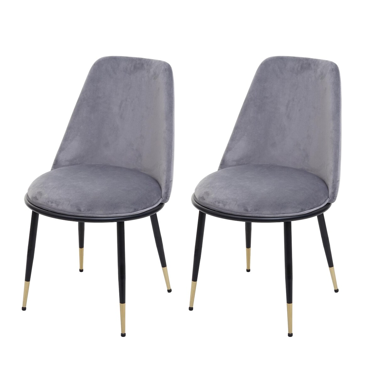 Mendler 2er-Set Esszimmerstuhl HWC-H28, Stuhl Küchenstuhl, Metall ~ grau, schwarze Beine, Samt