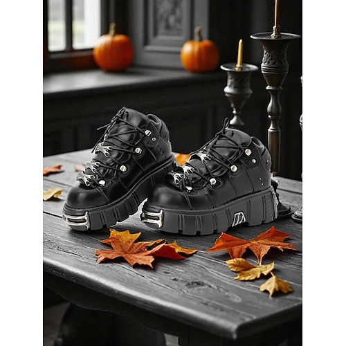 Sneakers da donna con plateau gotiche e dettagli in metallo - scarpe stringate in stile punk per la moda delle feste di Halloween