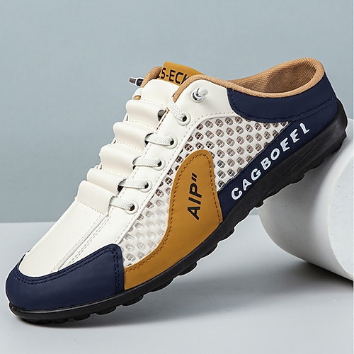 sneakers sportive da uomo bianche e blu navy, comode scarpe con lacci per stili di vita attivi, ideali per la corsa, le attività all'aperto e l'abbigliamento casual da giorno